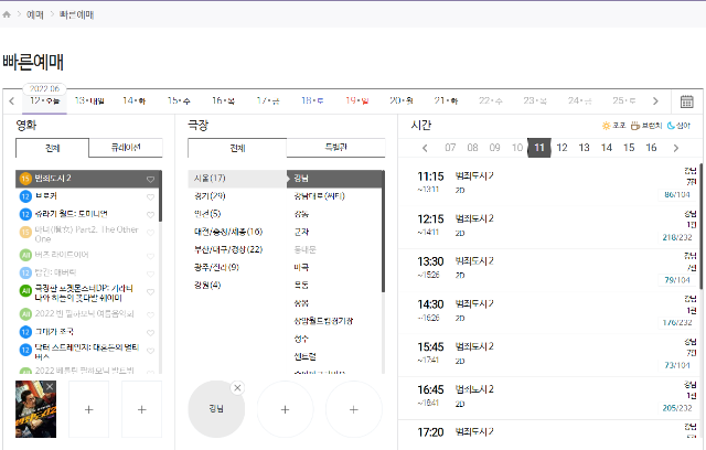 상영시간표 예매 정보