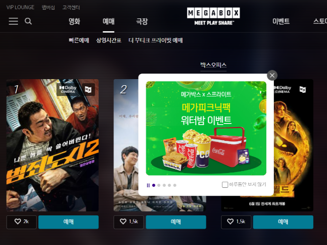 출처: 메가박스 홈페이지 MEET PLAY SHARE, 메가박스 (megabox.co.kr)